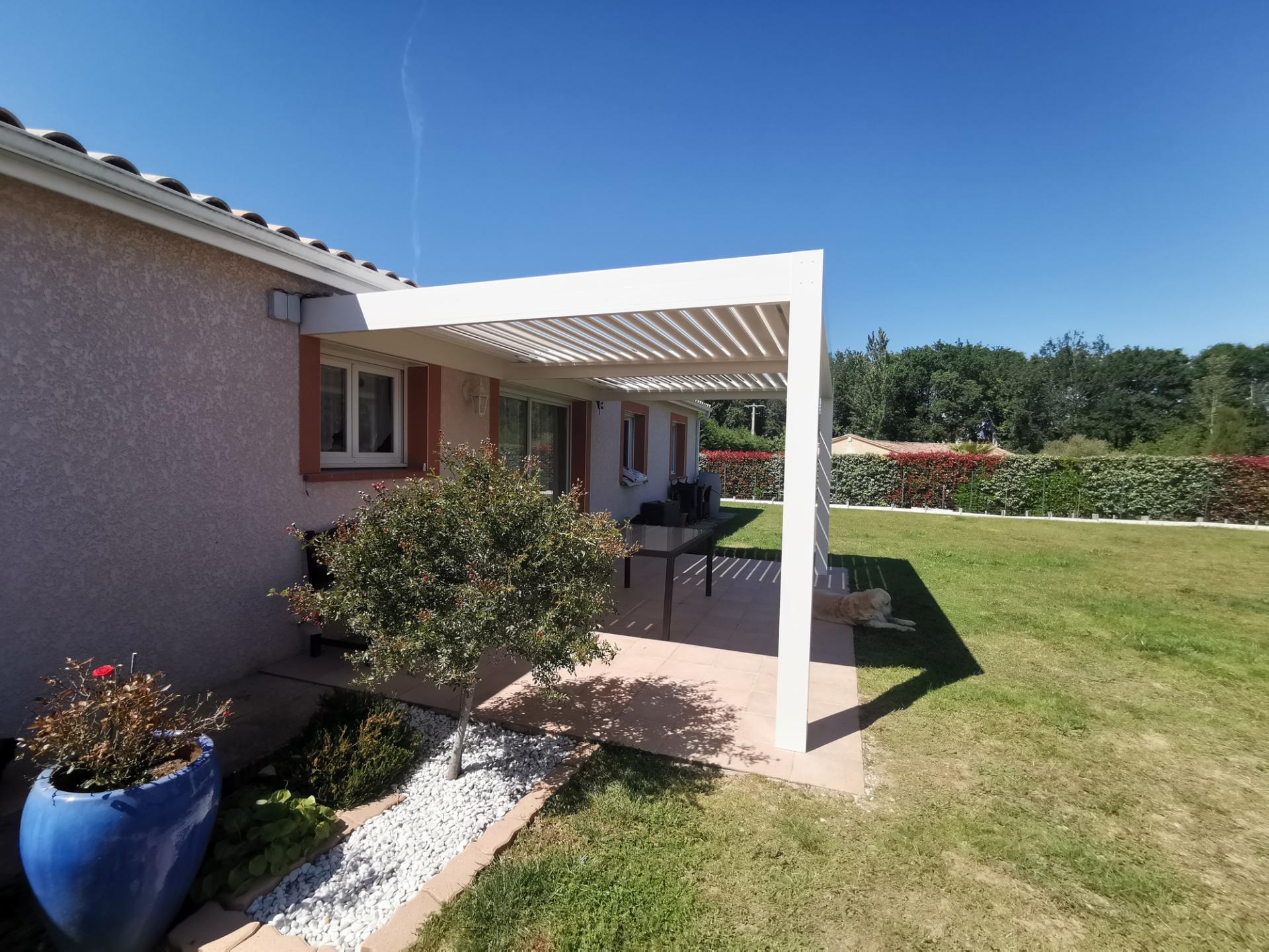 Dans le cadre d’un projet de rénovation de terrasse extérieure, Réseau CBP est intervenu à Fronton, en Haute-Garonne, pour la fourniture et la pose d’une pergola bioclimatique motorisé, modèle "ESSENTIELLE CLASSIC 2S". L’objectif : offrir un espace extérieur protégé, esthétique et fonctionnel grâce à une structure en aluminium extrudé avec lames orientables de 0° à 130°, le tout piloté à distance..